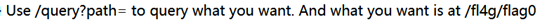 return 'Use /query?path= to query what you want. And what you want is at /fl4g/flag'